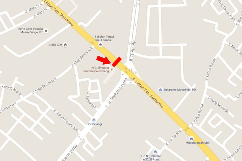 • JPO 5 m x 10 m, 2 muka Horizontal – Jl. Jend. Sudirman (depan SMA Negeri 3) Kota Palembang