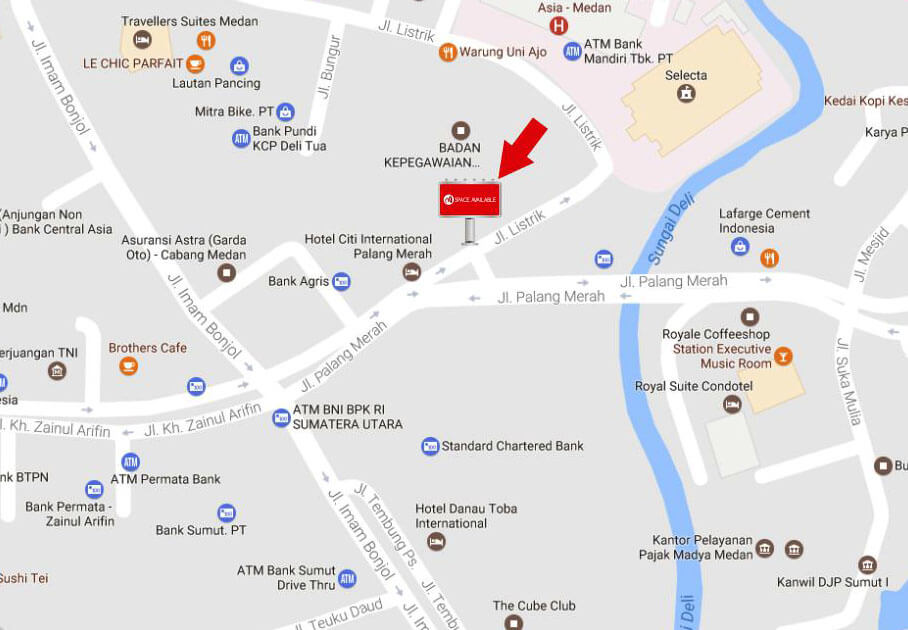 • Billboard 5 m x 10 m, 1 muka, horizontal – Jl. Palang Merah (simpang KFC Jl. Listrik) Kota Medan
